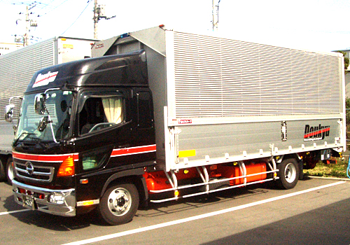 エアサスペンション装備した、ドライ貨物輸送に適したウイング車です。 荷台後方のゲートにより、プラットホームへの車着、フォークリフトの使用のできない場所での搬出入が可能です。